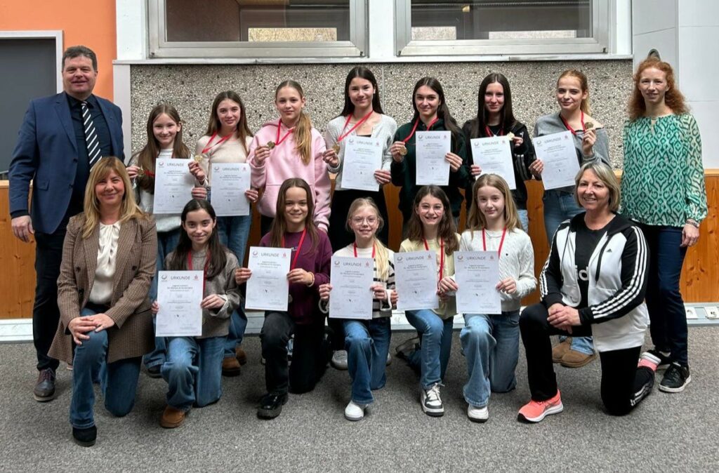 Wieder am NKG zurück, konnten Schulleiter Jochen Herkert und seine Stellvertreterin Elvira Horvath den Nachwuchssportlerinnen gratulieren und die NKG – Medaillen überreichen. Ebenso wurde den Sportlehrerinnen Carmen Grimme und Daniela Steiner ein großes Lob und Dankeschön ausgesprochen.